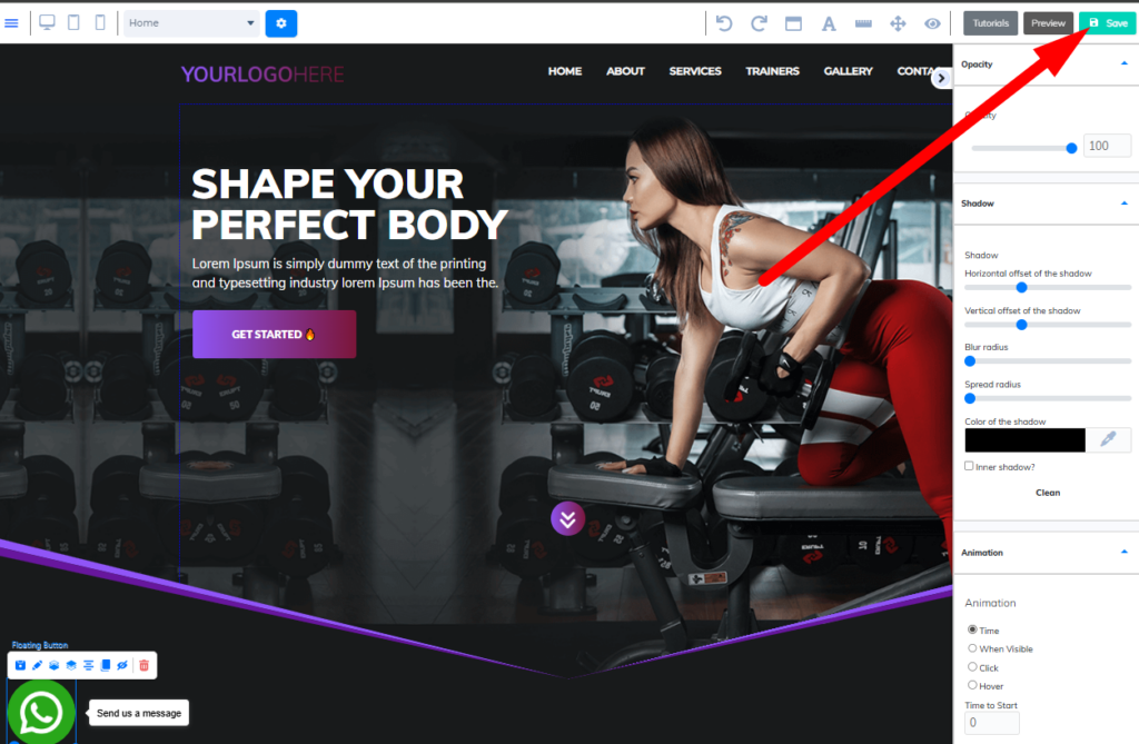 El constructor incluye un recurso nativo de botón flotante. Este botón permanece fijo en la pantalla y se ajusta automáticamente al tamaño del dispositivo del visitante.