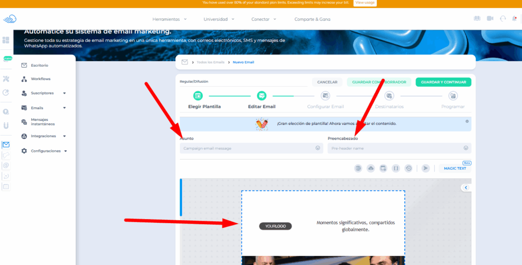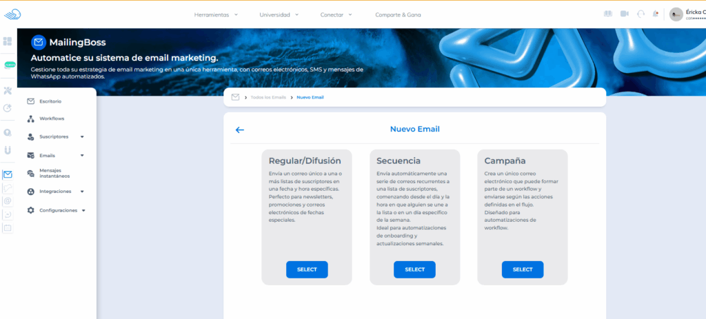 Antes de crear cualquier email, necesitas elegir el tipo correcto.