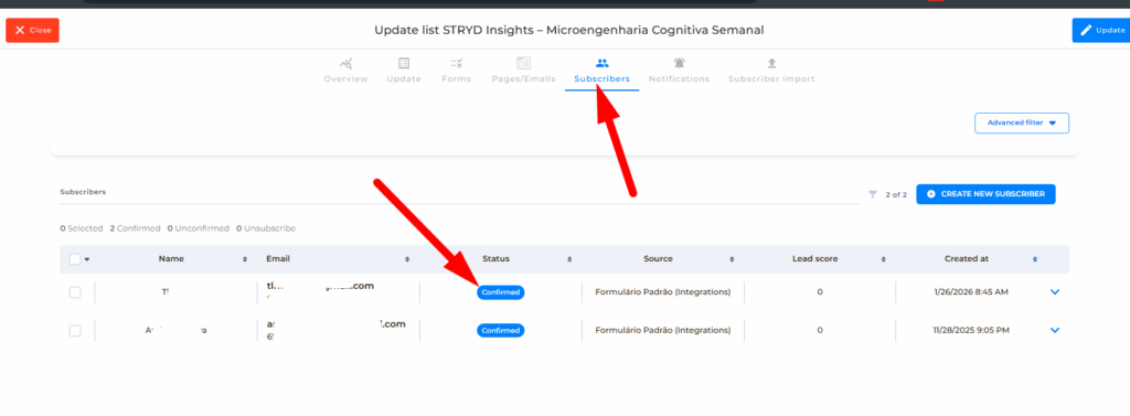 Los contactos son válidos, con estado confirmado, y no están desuscritos, desactivados o pendientes #