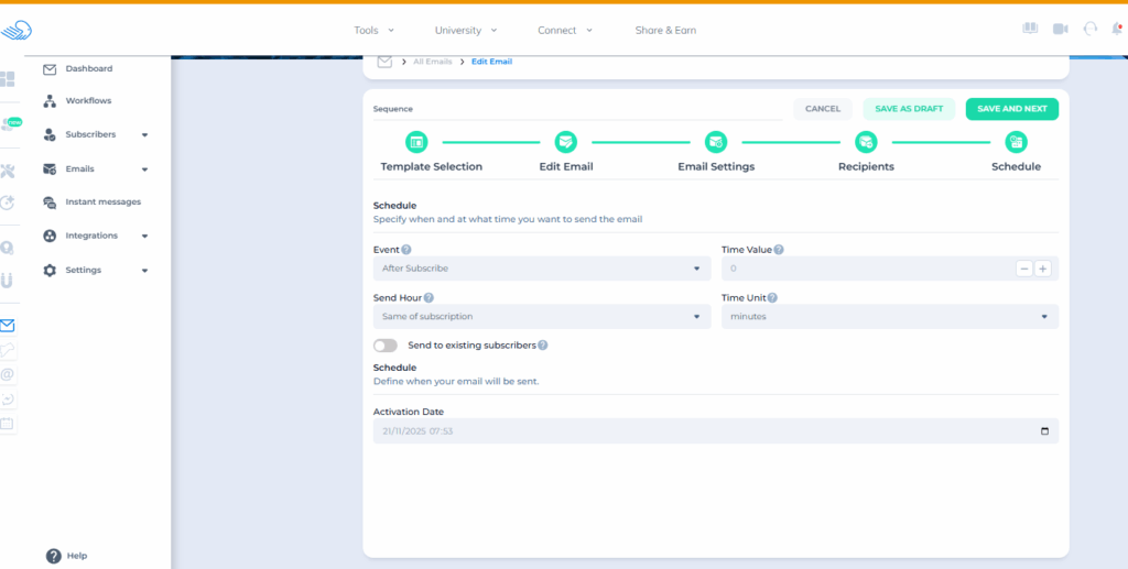 Envío basado en el tiempo después de que el lead entra en la lista.