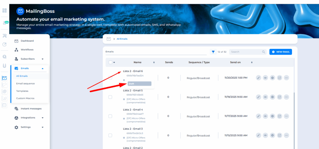 El tipo de envío es correcto, Regular, Secuencia o Campaña por Workflow #